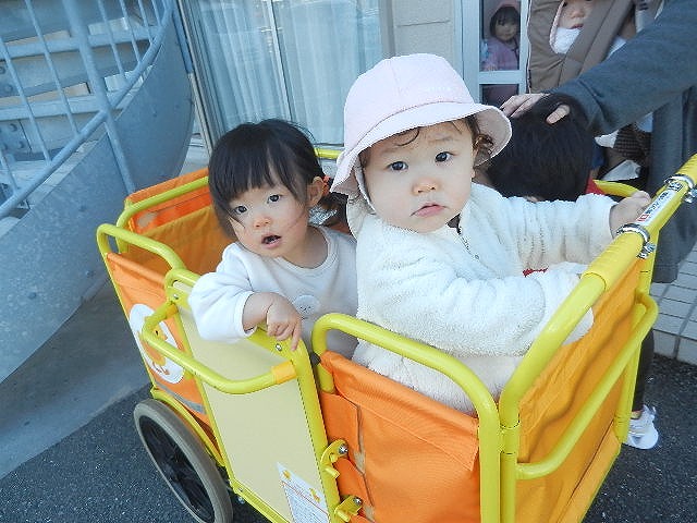 新入園児のお友達も、避難車に乗ったり保育士に抱っこしてもらったりして神社までいくことが出来ました。