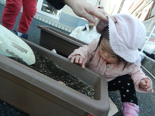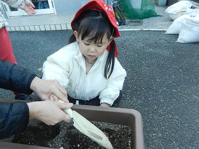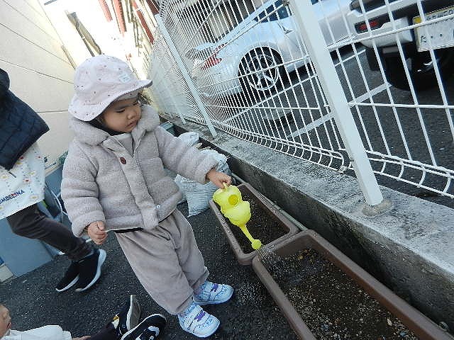 一つ一つ丁寧に土に上にのせ土をかけ水を掛けました。