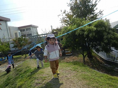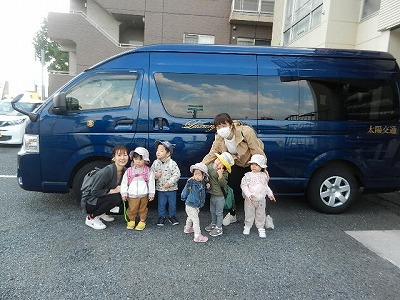 10月27日(月)、2歳児(ぱんだ組)は、姉妹園の行事保育園(行橋市)にジャンボタクシーに乗って行きました。