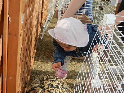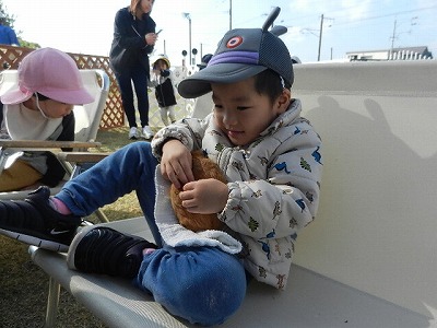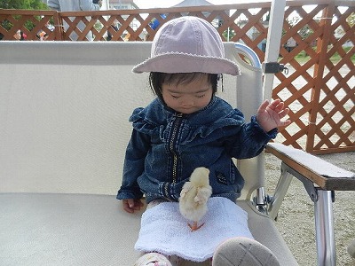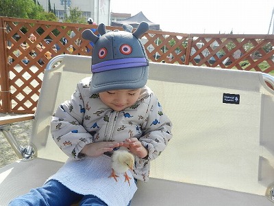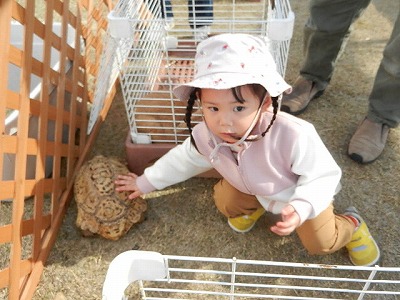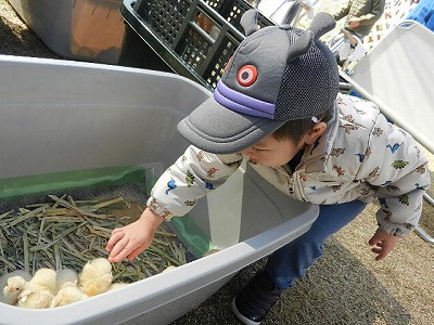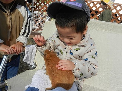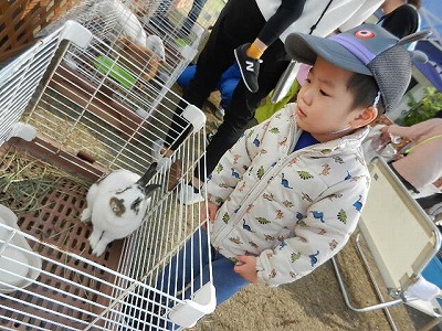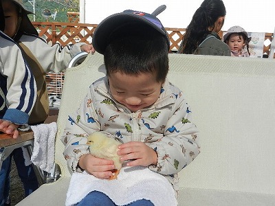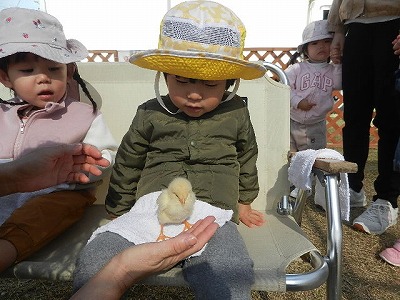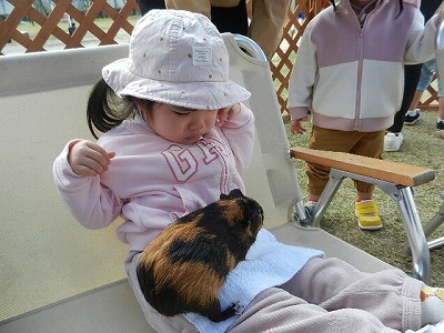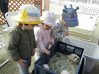 うさぎ・モルモット・ひよこなど小動物に触れました。初めは緊張していた子どもたちも少しずつ慣れてきて、