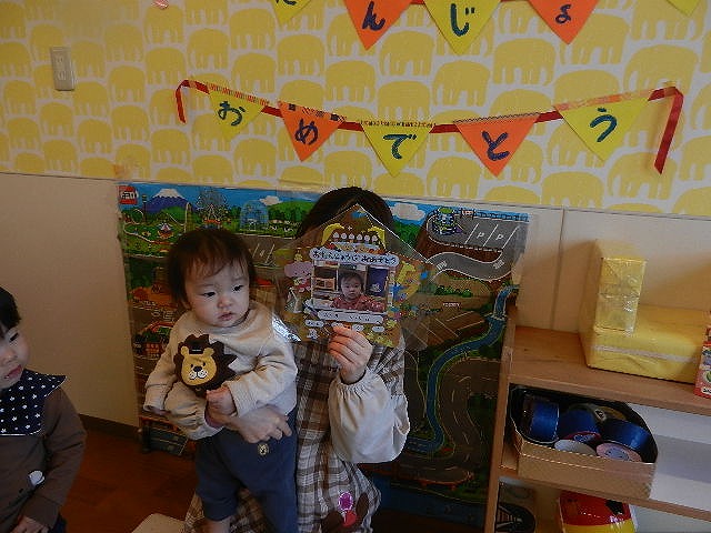 誕生児は前に出るとみんなにお祝いしてもらいとても嬉しそうでした。