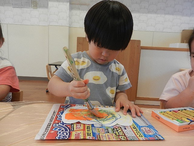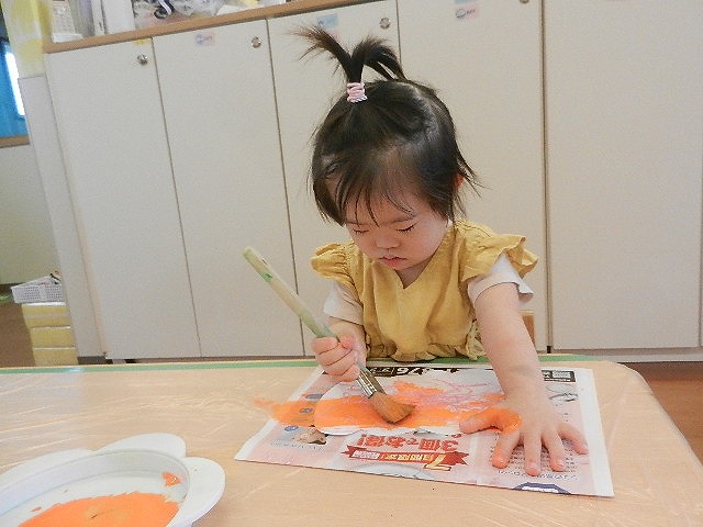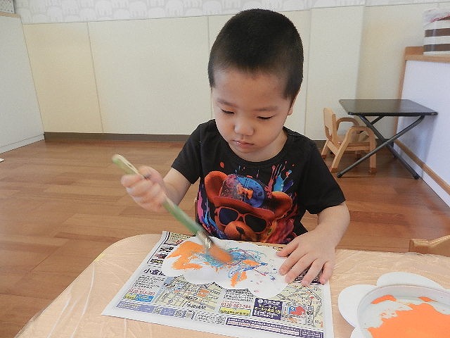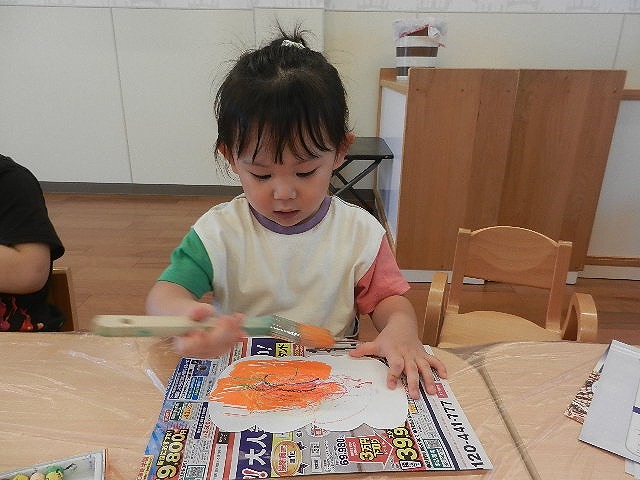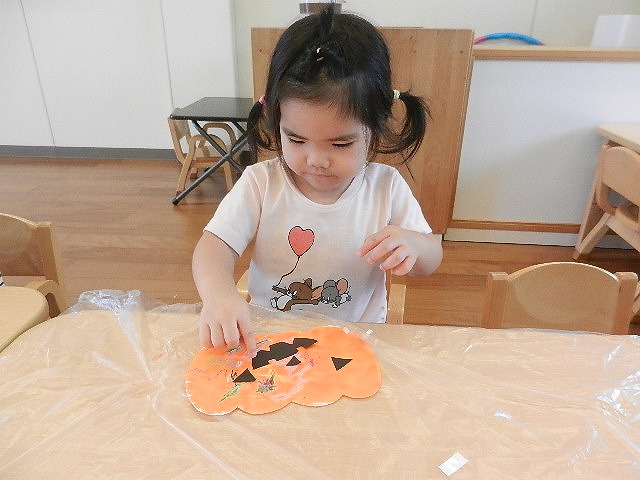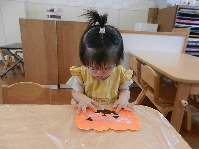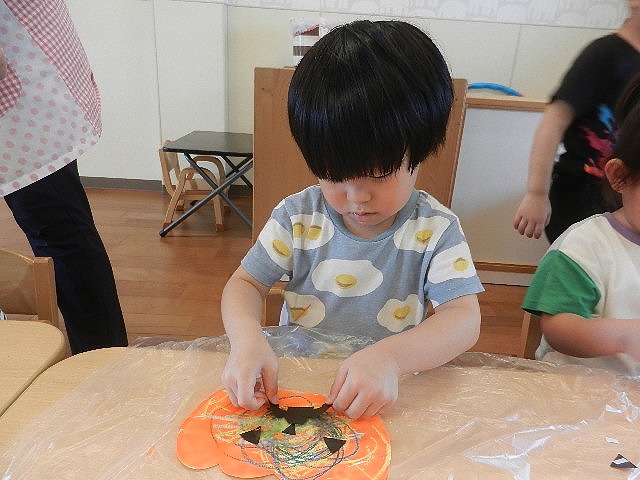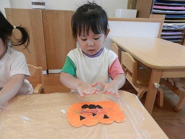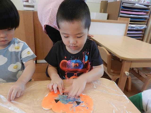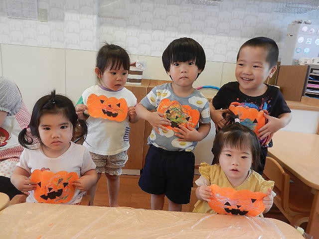 ぱんだ組が10月の製作でハロウインをのかぼちゃを作りました。