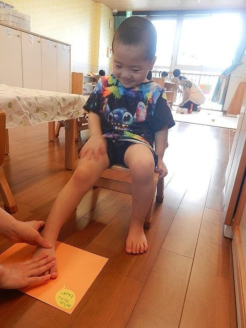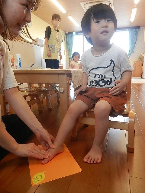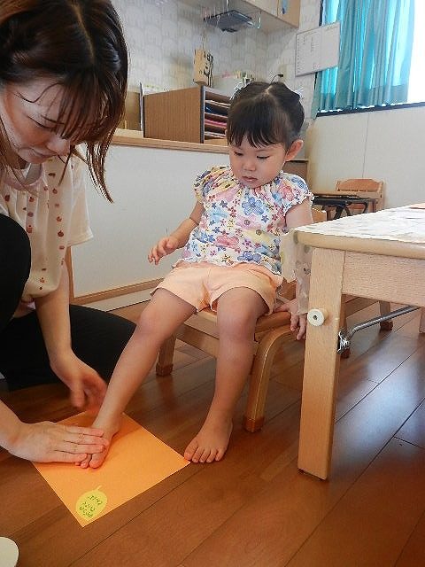足形を取ったりお絵描きをしたりして楽しみながら作りました。